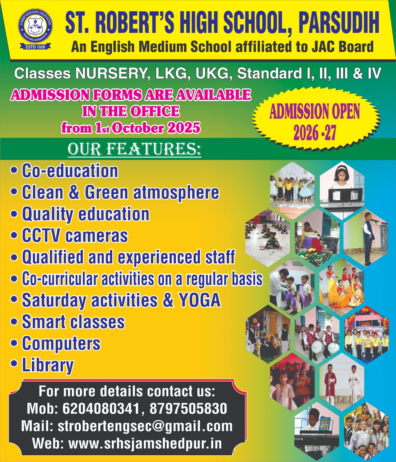 II) बच्चे का फीस बुक अवश्य लेकर आएँ |